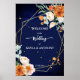 Roses orange et blanc sauge eucalyptus vert marine bleu arrière - plan or géométrique cadre fleuri personnalisé nom mariage panneau d'accueil affiche instantanée télécharger