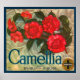Oranges de la marque Camellia crate d'art vintage étiquette de Californie avec de belles fleurs rouges de Camilla.