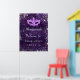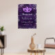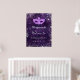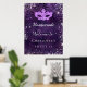 Une affiche de bienvenue pour une fête de 16e anniversaire de Sweet 16, girly et glamour. Un motif de dentelle fleurie violet profond comme arrière - plan. Décoré avec de la poussière de parties scintillant en faux argent et un masque masqué. Personnalisez et ajoutez un nom.