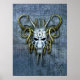 Ce masque de guerre alien à cornes est un spectacle menaçant à voir, avec son apparence de crâne et ses pointes métalliques pointues de son menton et de ses cornes en spirale dorée. Contre un arrière - plan gris, c'est un symbole redoutable de puissance et de force, qui ne convient qu'aux guerriers les plus impitoyables et les plus compétents.