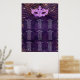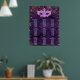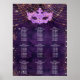 Carte de siège pour une mascarade Un motif de dentelle fleurie violette profonde en tant qu'arrière - plan. Décoré avec de la poussière de parties scintillant imitation et des masques masqués. Personnalisez et ajoutez les noms des invités. 9 tableaux.