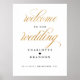 C'est une belle affiche paysagère bienvenue à notre panneau mariage de réception avec un texte en faux script or.