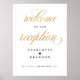 C'est une belle affiche paysagère bienvenue à notre panneau mariage de réception avec un texte en faux script or.