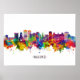 Elegant Watercolor Skyline of Mainz, a German city on the Rhine River. It's known for its old town, with half-timbered houses and medieval market squares