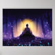 Bouddha méditant sous un arbre avec un arrière - plan violet et brillant.