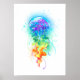 Grande méduse irisée, artistiquement dessinée, brillante, avec de longues tentacules sur le blanc, peinte sur l'arrière - plan multicolore. Méduse arc-en-ciel.