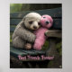 L'affiche Best Friends Forever, un bébé paresseux serrant son ours en peluche rose, assis sur un ancien banc du parc.