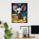 "Plongez dans une aventure rasante avec notre souris spatiale ! Cet adorable astronaute savoure un festin cosmique de grands et délicieux petits cubes de fromage à sa table galactique. Avec son casque d'espace minuscule et son grand sourire au fromage, il prouve que même dans les confins de l'univers, rien ne bat un bon snack. Parfait pour ajouter une touche d'amusement interstellaire et de fantaisie à toute chambre d'enfants, cette affiche fera rire et rêver de fromage spatial !"