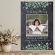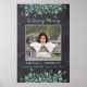 Affiche funéraire de sympathie mémorielle Eucalyptus moderne. Cette élégante affiche mémorielle présente un design de verdure d'eucalyptus rustique sur ardoise de tableau noir. "En souvenir affectueux" Personnalisez ce panneau funéraire mémorial avec la photo, le nom et les dates de vos proches. Cette affiche mémorielle sera un souvenir précieux, pour les funérailles et la célébration de la vie. COPYRIGHT © 2020 Judy Burrows, Black Dog Art - Tous droits réservés. Affiche funéraire de souvenir affectueux mémoriel Eucalyptus rustique.