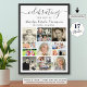 Célébrez la vie de votre proche disparu avec ce poster photo souvenir utilisant ce modèle de collage photo facile à télécharger avec 17 photos carrées et rectangulaires à afficher lors d'une cérémonie funèbre, d'une veillée funèbre, d'une visite ou d'une célébration de la vie. Le design présente une typographie calligraphique moderne pour le titre "Célébration de la vie de NOM" et les dates. OPTIONS : L'exemple est présenté dans un format 20x28" sur papier Value (Matte); d'autres formats standard et personnalisés, ainsi que la qualité du papier, un fichier de téléchargement numérique instantané pour impression locale ou transfert du design sur un panneau de mousse, une bannière, une toile ou d'autres options de produits sont disponibles sur la page de commande. ASTUCE DE REDIMENSIONNEMENT : Choisissez "Taille personnalisée" pour des bordures égales en modifiant la hauteur et la largeur proportionnellement APRÈS avoir cliqué sur l'icône DÉVERROUILLER (ressemble à un maillon de chaîne). ASSISTANCE : Pour obtenir de l'aide pour la modification ou la personnalisation du design, le changement de couleur,