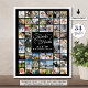 Créez un affichage de photos en hommage à la mémoire d'un être cher pour un service funéraire ou une célébration de la vie en utilisant ce modèle de collage de photos facile à télécharger avec 54 photos carrées à travers les années. Le design présente un titre élégant en typographie calligraphique FOREVER IN OUR HEARTS (À jamais dans nos cœurs) et personnalisé avec le nom et les dates. OPTIONS D'AFFICHE : L'exemple est présenté dans un format 24x30" sur papier Value (Matte) ; d'autres tailles d'impression et qualités de papier, TÉLÉCHARGEMENT INSTANTANÉ ou options de transfert de design vers un autre produit sont disponibles sur la page de commande. ASSISTANCE : Pour obtenir de l'aide pour la modification ou la personnalisation du design, le changement de couleur ou le transfert du design vers un autre produit pour honorer votre être cher, contactez le
