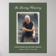 Un simple poster vert d'accueil commémoratif présente "In Loving Memory" avec la photo, le nom, les dates de naissance et de mort de votre être cher. Commandez IMPRIMÉE et/ou TÉLÉCHARGEMENT INSTANT pour vous avoir imprimé. CORRESPONDANCE d'objets dans notre collection.