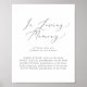 Ce panneau mémorial de mariage délicat en argent est parfait pour un mariage moderne. Le design romantique minimaliste présente une typographie grise argentée élégante et charmante sur fond blanc avec un aspect propre et simple.