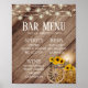 Affiche Menu Bar - Baril Rustique en Bois et Tournesols