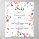 Affiche Menu classique de boissons de mariage aux fleurs s