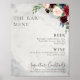 complétez votre événement de mariage rustique avec ce menu de bar de mariage fleurs de paon rose classique élégant. Le design présente de belles fleurs roses, blush, bleues, marine et bordeaux peintes à la main avec des feuilles vertes, soigneusement regroupées en bouquets élégants pour embellir vos cartes d'invitation de mariage.