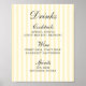 Invitation vos invités à une célébration sophistiquée avec notre élégante affiche de menu de bar téléchargeable de la Soirée nuptiale, où l'élégance intemporelle et le charme moderne. Cette affiche magnifiquement conçue présente un décor serein rayé jaune, offrant une toile chaleureuse et accueillante qui respire l'élégance et le raffinement. Les bandes douces ajoutent une texture subtile, rehaussant l'esthétique générale tout en conservant un attrait classique. Avec un texte entièrement personnalisable, ce panneau peut être personnalisé selon vos besoins.