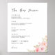 Affiche Menu de la barre du Mariage rose Modèle des signes