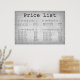 Ce grand modèle d'affiche murale de liste de prix de designer graphique contemporain en typographie est configuré et prêt pour que vous puissiez le sur-taper avec tous vos propres services et prix de salon de menu de café.