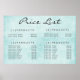 Affiche Menu de prix du service de mur sarcelle imprimé su