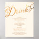 Affiche Menu des boissons de mariage en calligraphie or fa