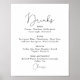 Ce panneau de menu des boissons de mariage avec calligraphie simple est parfait pour un mariage rustique. Le design simple et élégant présente une typographie script classique et fantaisie en noir et blanc.