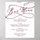 Cette affiche de menu de bar de calligraphie de texte de Bourgogne romantique est parfaite pour un simple mariage. Le design moderne classique présente des volutes fantaisistes et des fioritures fantaisistes avec une typographie élégante et manuscrite. Personnalisez le panneau avec les boissons disponibles à votre réception.