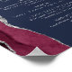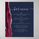Un panneau élégant pour le menu de votre bar de mariage. Les mots "menu du bar" apparaissent en calligraphie grise argentée avec des fioritures au début et à la fin, avec un texte personnalisable en dessous. Un design d'agate aquarelle bordeaux orné de faux strass argentés décore la bordure gauche sur un fond bleu marine. Consultez notre collection pour une suite de faire-part de mariage et de papeterie assortis.