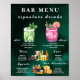 Menu d'Affiche de Bar de Mariage Vert Émeraude | Panneau de Boissons Luxueux Or Élégant | Cocktails Signature Personnalisés