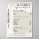Menu Gris Plat Boulangerie Liste des prix Poster
