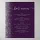 Un panneau élégant pour votre menu de bar mariage. Les mots "menu barre" apparaissent dans la calligraphie d'écriture manuscrite gris argent avec des swashes au début et à la fin, avec le texte personnalisable ci-dessous. Une parties scintillant en faux argent orne la bordure gauche sur un arrière - plan violet foncé. Voir notre collection pour la suite de faire-part de mariage et la papeterie de jour correspondant.