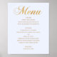 Affiche Menu mariage or pour le dîner. Bleu élégant simple