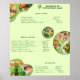 En tant que propriétaire de restaurant ou de snack, vous souhaitez sûrement présenter les plats que vous proposez à vos clients de manière engageante. Ce menu et cette liste de prix sous forme d'affiche sont là pour aider les entreprises qui promeuvent des choix alimentaires sains. Avec un design créatif élégant, minimaliste et professionnel axé sur de délicieuses offres végétaliennes, ce guide de commande fera patienter les clients. Les végétariens soucieux de leur santé et les amateurs de fitness pourront facilement repérer vos salades nutritives, tacos, pâtes, smoothies verts et plus encore. La présentation visuelle esthétique de photos de plats végétaliens appétissants et la palette de couleurs accrocheuse verte correspondent à l'image de marque de ce type d'établissement, tandis que la mise en page personnalisable vous permet de mettre en avant vos plats préférés comme vous le souhaitez. Vous pouvez également ajouter le nom et le logo de votre entreprise pour renforcer la reconnaissance de votre marque lorsque les clients