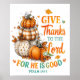 Design paisible et coloré avec une belle scène automne/automne avec un citrouille décoratif empilé et des feuilles automne. Le texte inspirant et coloré dit : "Remerciez le Seigneur pour son bien. Psaume 136:1". Ce design est disponible sur une grande variété de produits.