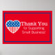 Message patriotique aux clients et à la communauté pour le soutien de vos petites entreprises locales. Les deux lignes de texte peuvent être customisées. Graphique de coeur patriotique sur arrière - plan rouge avec cadre mince de bordure bleue.