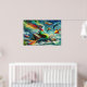 abstrait look peint à l'huile avec l'image d'une nageoire topique de sirène en haut rouge et vert assis sur un rocher avec l'océan et cinq autres poissons topiques colorés et baleines et phoques autour d'elle avec un ciel bleu.algues vertes flottant. Ce design présente des couleurs éclatantes or brillantes et pose puissante .avec des gouttes de peinture dessus