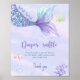"Une douce petite sirène est en route", soirée "Under the Sea" sur le thème de la petite fille baby shower. Aquarelle aux teintes violettes et bleues pastel, avec la queue joueuse de sirène, le poisson clown et les coraux.