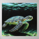 Cette affiche présente une peinture à l'huile d'une tortue de mer sereine nageant sous l'eau.