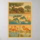 Cette œuvre d'art charmante de style rétro capture un éventail diversifié de faune dans leurs habitats naturels - des dauphins joueurs sautant dans l'océan, aux flamants roses élégants pataugeant dans les zones humides, et aux sangliers sauvages errant dans les bois. Idéal pour les amoureux des animaux, ce design inspiré des bandes dessinées mélange la narration et le charme vintage dans une impression vibrante.