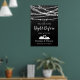 Pancarte de bienvenue pour la soirée de répétition de la veille - ce design présente des guirlandes lumineuses et des étoiles sur un fond texturé noir. Et en bas - Deux cygnes formant un cœur.