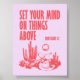 OEuvre murale chrétienne audacieuse avec une illustration désertique dans les tons rose et rouge. Avec le verset "Mettez votre esprit sur les choses au-dessus" (Colossiens 3:2). Un imprimé coloré et inspirant, parfait pour égayer votre espace de vie, votre bureau ou votre salle de prière.