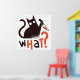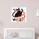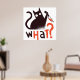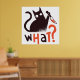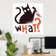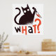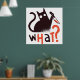 Design amusant avec un chat noir tenant un couteau et le mot QUOI ?