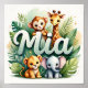 Beau décor de pépinière avec de charmants animaux de safari bébé et des feuilles tropicaux du nom Mia bien en vue. Une atmosphère chaleureuse et aventureuse, parfaite pour une chambre d'enfant. Impression de haute qualité prête pour le cadrage. Noms personnalisés disponibles - envoyez-moi un message pour plus de détails !