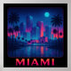 Bring the heat of South Florida nights to your walls with Miami Moonrise, a radiant cityscape design that pulses with tropical energy. This stylized illustration features glowing skyscrapers in vibrant pinks, purples, and blues, reflected in calm waters beneath a full moon. Silhouetted palm trees frame the scene, while the bold “MIAMI” text anchors the composition in a sunset-to-neon gradient.
