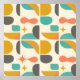 Infuse your space with playful retro energy through this vibrant mid-century modern abstract pattern that radiates joy and sophistication. Bold organic shapes—curved semi-circles, wavy blobs, rounded rectangles, and sparkling starbursts—dance in mustard yellow, teal blue, coral pink, and charcoal gray on a soft cream background. The textured, hand-crafted feel and harmonious color blocking evoke classic 1950s-60s design.