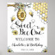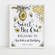 Cette jolie fille d'abeille au miel 1er anniversaire affiche d'accueil avec des tournesols, ruche, nid d'abeille et une police courbée tendance.
