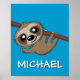 Ce mignon paresseux se détend et attend de jouer. Derrière lui, il y a un fond bleu. En dessous de lui se trouve le nom de votre enfant, qui joue avec lui dans la forêt tropicale. Ajoutez un compagnon mignon à la chambre ou à la nurserie de votre enfant.