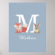 Cette jolie affiche bleue présente un petit renard de forêt boisée et un lapin lapin lapin assis de chaque côté du monogramme et du nom. Conçu par Thisisnotme©