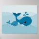 Affiche Mignonnes baleines kawaii nageant dans des vagues