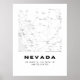 Cette carte minimaliste du Nevada présente un design élégant noir et blanc avec des coordonnées précises, célébrant l'état d'argent de manière élégante et moderne. Idéal pour la décoration maison, cette pièce donne vie au caractère unique du Nevada.